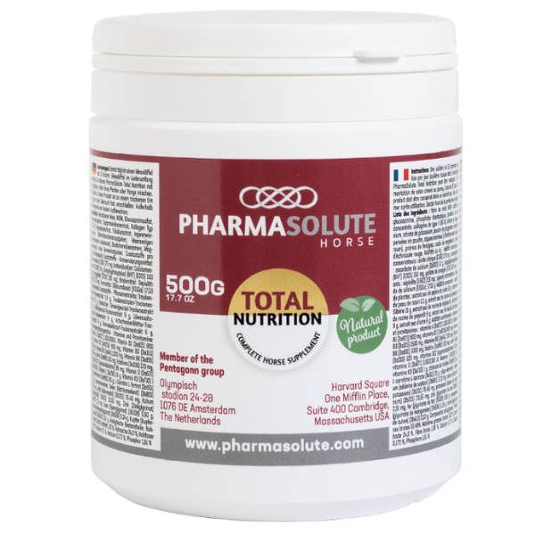 PharmaSolute Total Nutrition besteht aus 49 verschiedenen natürlichen Inhaltsstoffen. Eine Dosierung liefert Ihrem Pferd eine ausgewogene Auswahl an Vitaminen, Mineralstoffen und Kräutern. Geeignet für den täglichen Gebrauch ein Leben lang.