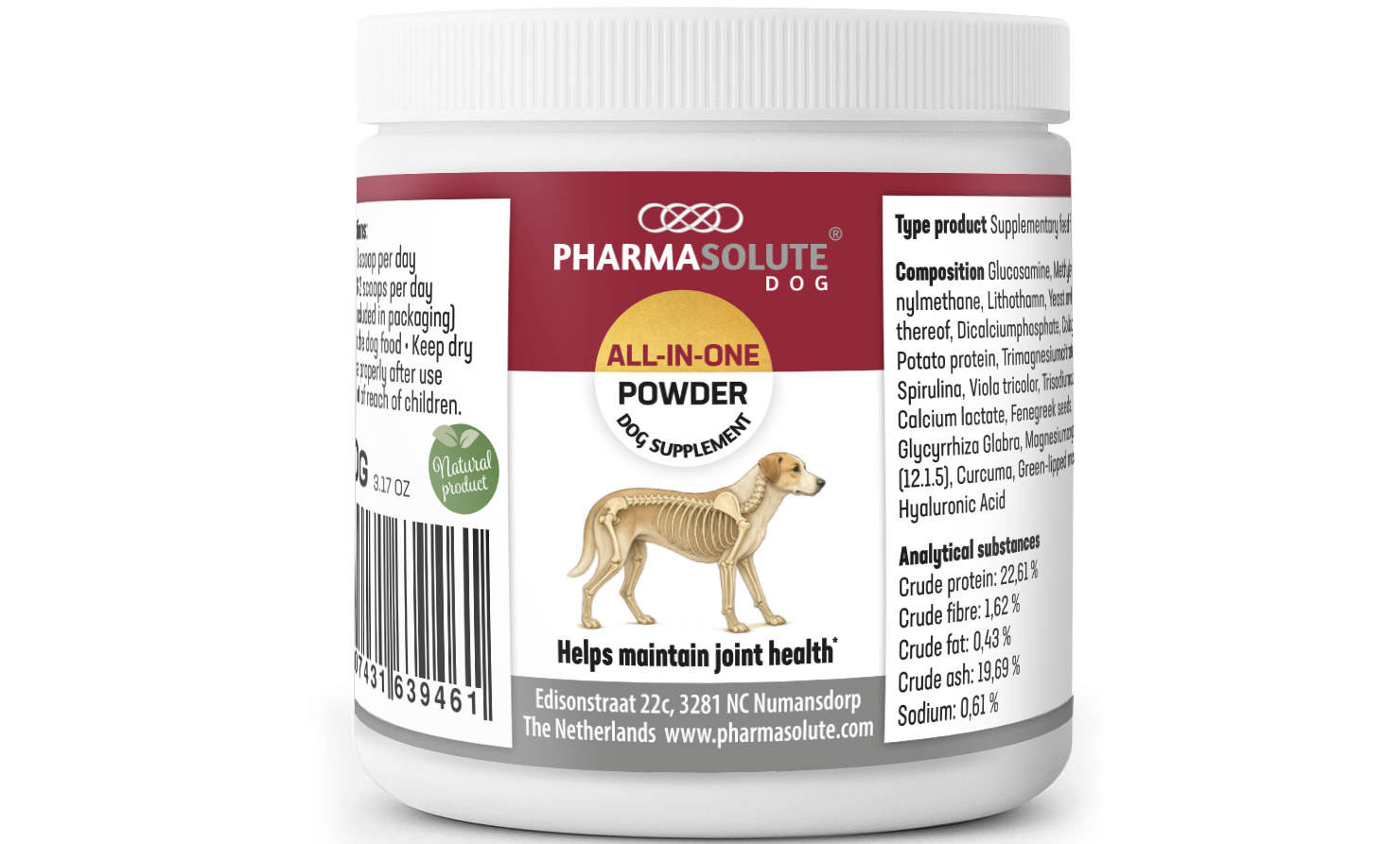 After years of developing and testing PharmaSolute All-in-one became the result. It is regarded as one of the most powerful and highest- quality in its kind. Many dogs experience the benefits of PharmaSolute All-in-one. For maintaining good joint functions healthy cartilage and managing all inflammations in your dog, use PharmaSolute All-in-one it works!